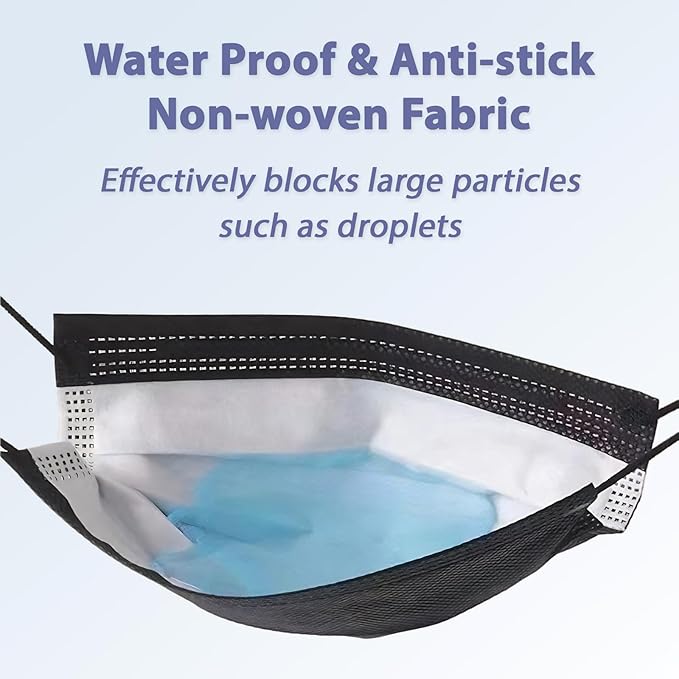 50 Pack Black Disposable Face Mask for Adults, Fashion 3-Ply Breathable Earloop Full Face Protection for Women & Men