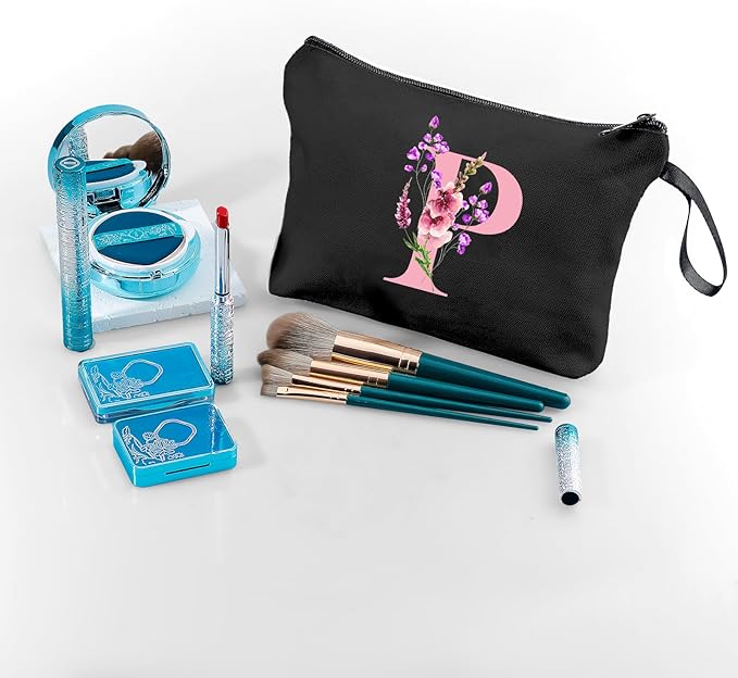 • BEST WOMENS BIRTHDAY GIFTS SET:This monogram gifts combination includes a makeup bag with "P" printed on both sides and a small mirror.This is a birthday gifts for women.