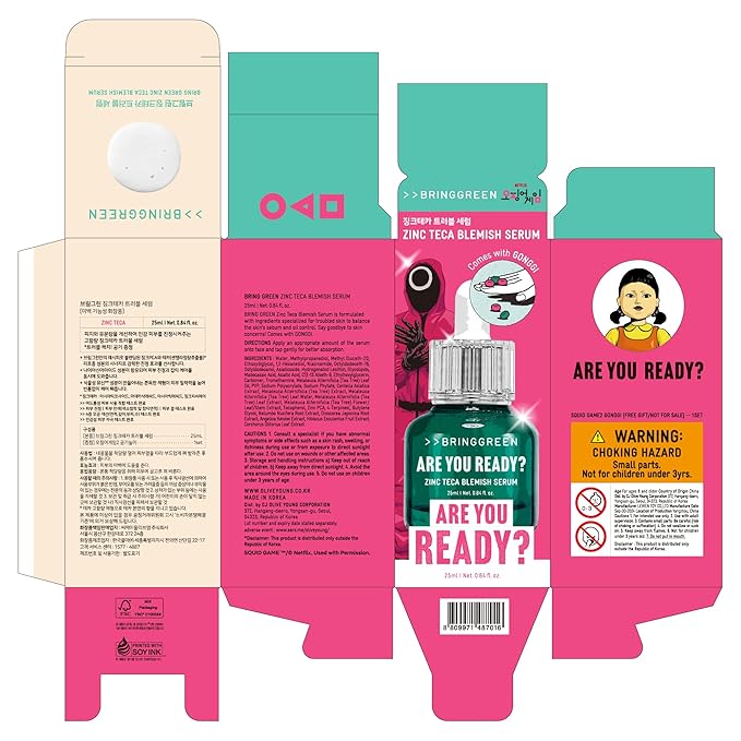 BRING GREEN X NETFLIX SQUID GAME Edition Zinc Teca Serum 25mL | Calming Serum for Skin Soothing & Oil Control | Includes Free Gonggi Tossing Game as Seen in Squid Game