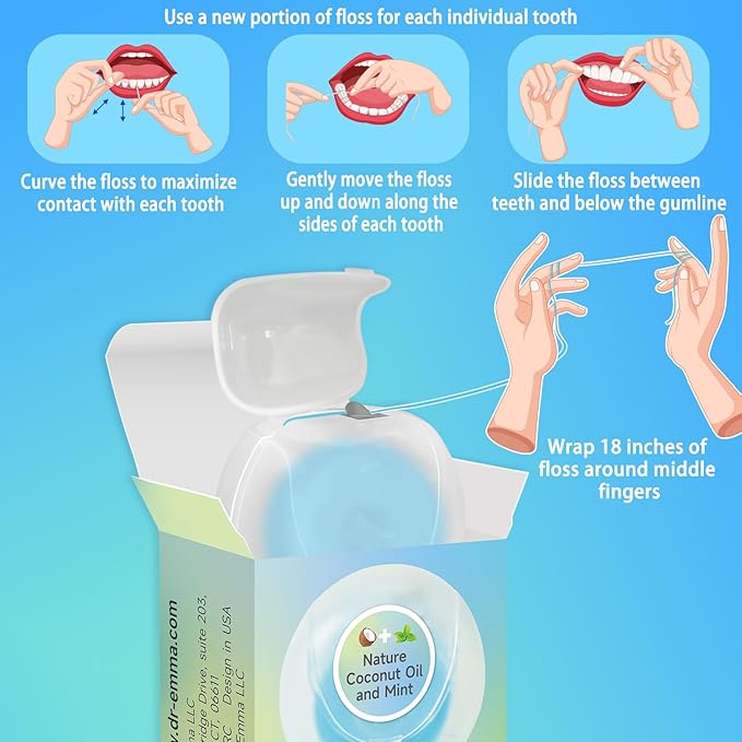 Dr. Emma Woven Dental Floss Coconut Oil Infused Expanding Dental Floss, Oral Care Stretchable Floss, Mint 33yd Blue, Pack of 2