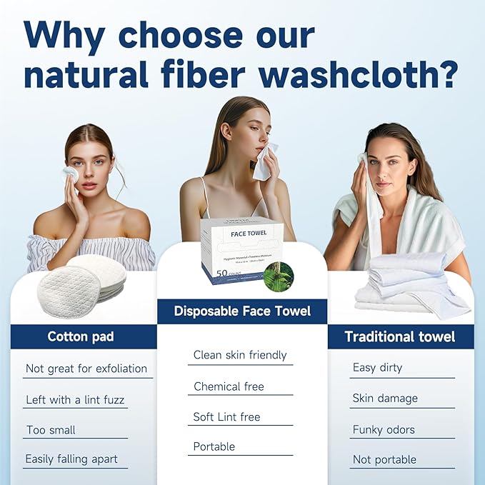 - EXCELLENT NATURAL FABRIC: Disposable face towel made of natural plant fibre Which is 100% biodegradable, Chemical-free no fluorescer, Safely and efficiently use these facial towels without fragrance.However, facial cleansing towel has an excellent cleaning effect and is suitable for all skin types,including normal, oily, dry and sensitive skin