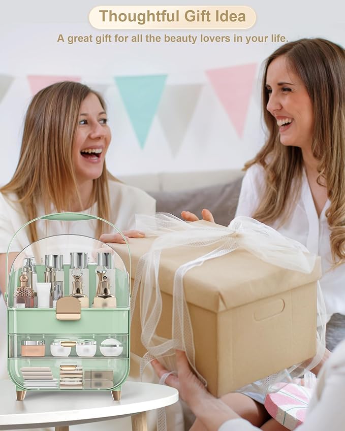 Makeup Organizer, Skincare Holder Bathroom Counter Organizer, Storage Box Cosmetic Display Cases, Teen Girl Gifts Trendy Stuff Make up Organizers for Vanity, Dresser, Countertop (Green)