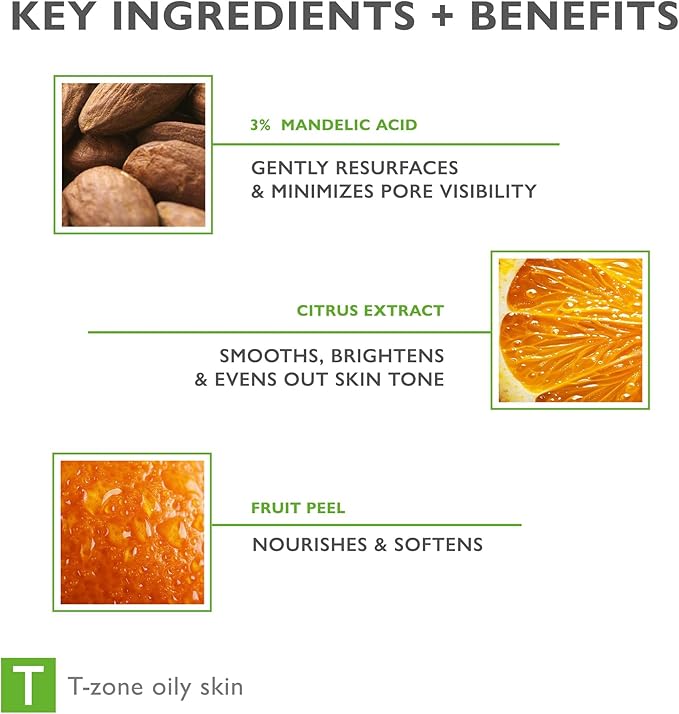 - Brightening: Citrus extract and fruit-peel complex helps fade post-acne discoloration and even out skin tone.