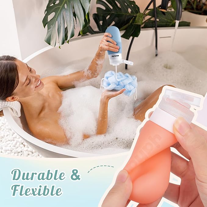 - Leak-proof Design:Leak Proof Silicone Squeezable travel size toiletries prevents liquid leakage or spillage, offers protection to your luggage and cloths.