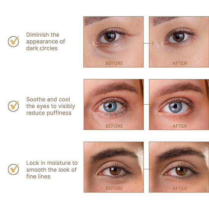 - π§ Powerful Active Ingredients β Infused with Vitamin C, Caffeine, Collagen, Peptides, and Hyaluronic Acid to target dark circles, puffiness, and fine lines effectively.