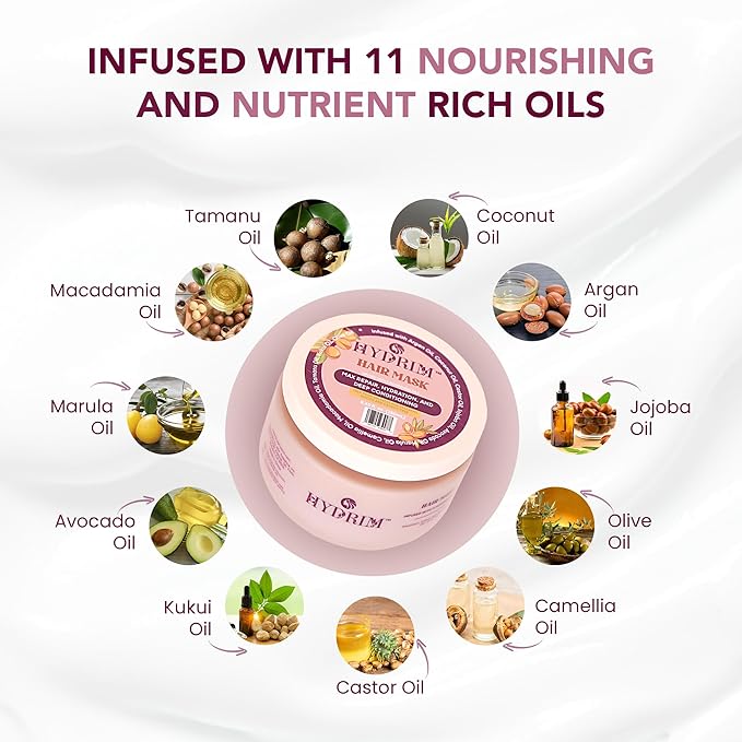 - ๐ธ The Hydrim Hair Mask features a delicate and relaxing fresh floral aroma that soothes your senses while deeply nourishing and pampering your hair.