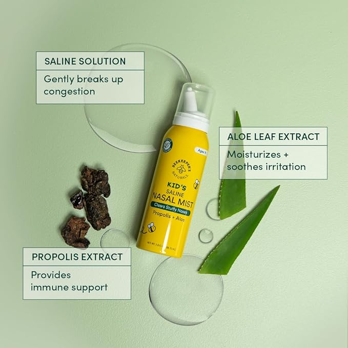 - FORMULATED WITH DOCTORS: Formulated with doctors, our Kid’s Propolis Saline Nasal Mist features a potent dose of propolis and aloe leaf extract to soothe and moisturize irritated and congested noses for easy breathing all year round.