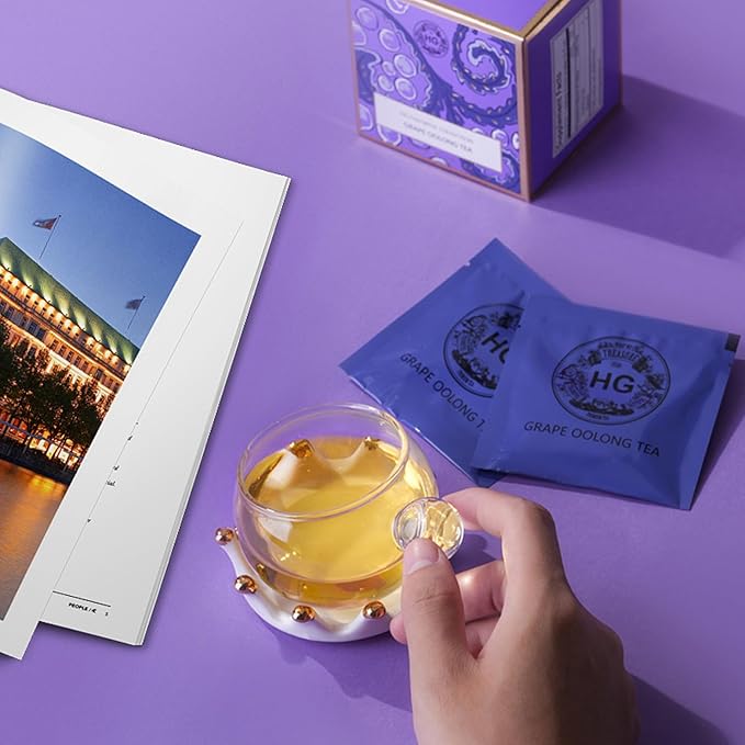Grape Oolong Tea Gift Set – Fruity & Floral Oolong Blend with Natural Ingredients | 20 Tea Bags (3.5g) + 100g Rock Sugar | Wellness Support, Caffeine Boost | Elegant Holiday Gift Box for Women, Friends, Tea Lovers