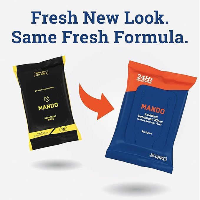 - FRESH & CONVENIENT - Amplify the exceptional odor control of Mando Whole Body Deodorant with our soft, 6”X6” towelettes that are perfect for a quick touch up on the go. Lightly scented.