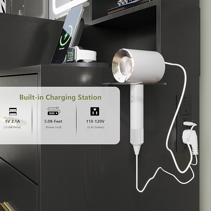 - Elegant and Functional Design: The modern design of this black vanity blends style with practicality. It’s a perfect addition to any bedroom or dressing room, designed to serve as a vanity desk with mirror and lights. Ideal for women, teens, and anyone seeking a touch of sophistication in their space.
