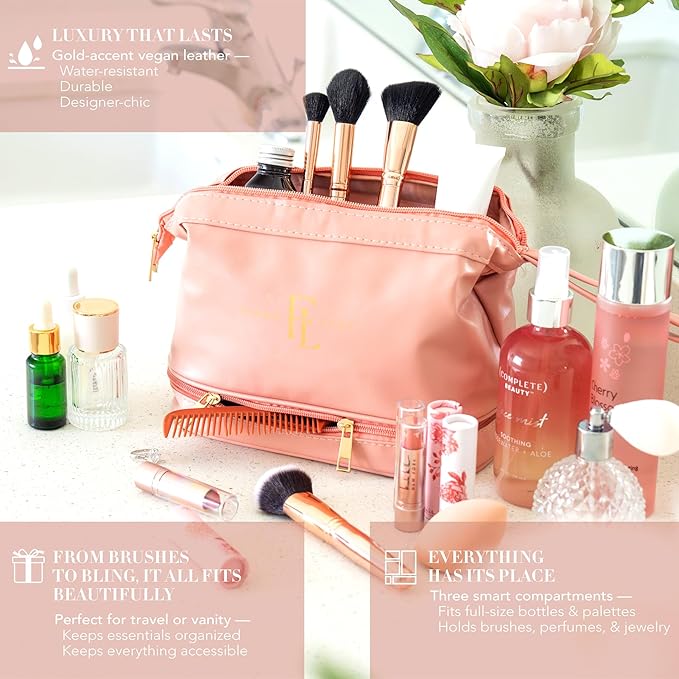 - Water-Resistant Vegan Leather Makeup Bag – Our women’s day gifts for her include a unique bag. Crafted with durability and design in mind, our exclusive makeup bag features a sleek, structured silhouette ideal for beauty tools, travel accessories, or tech. Also makes a thoughtful get well gifts for women option.