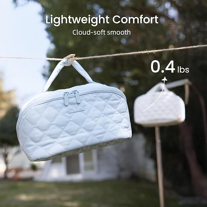 - 【Puffy&Machine-Washable Fabric】:Crafted from waterproof cloud-soft puffer material, this cosmetic travel bag combines durability with style. The crush-resistant padding protects fragile items, while the machine-washable fabric ensures effortless cleaning. Lightweight yet structured, it stands upright on countertops.