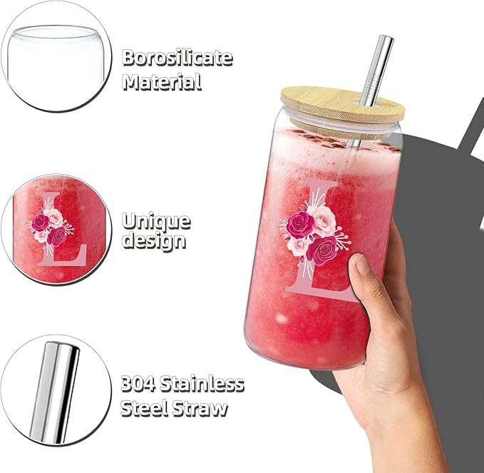 - The set includes: 16oz initial glass cup*1. Tote bag*1. Makeup bag*1. Jewelry storage box*1. Monogrammed pendant*1. Greeting card*1. Gift box*1. A beautiful personalized gift.