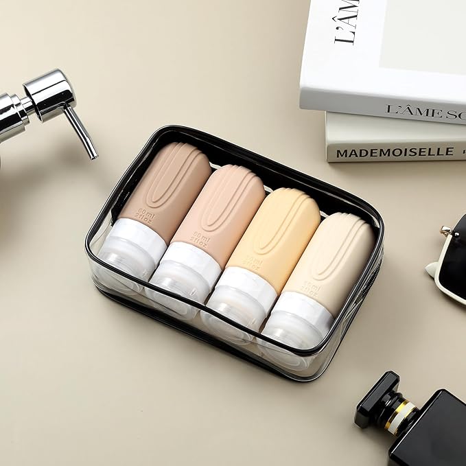 - TSA carry on approval: 4 pack 2 oz silicone travel bottles, very suitable for shampoo, conditioner, shower gel, lotion, hand sanitizer and shower gel. It is equipped with a high-quality zipper transparent wash bag, which saves space and allows you to travel long distance freely like a professional.