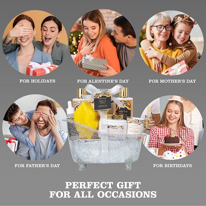 Saint Roy for Men & Dad Bath and Body Almond Milk Vanilla Spa Gifts for Women, Bath Gift Set Shower Gel, Scent Lotion, Bath Bomb Spa Gift Basket, Bath Care Set Birthday Holiday Home Spa Gifts