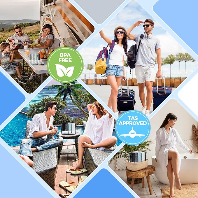 - 【TSA APPROVED】These 16-pack of toiletry travel bottles meet all TSA carry-on baggage standards, allowing you to pass through security smoothly. There is also a clear and sturdy zipper bag, which is perfect for quick airport inspections