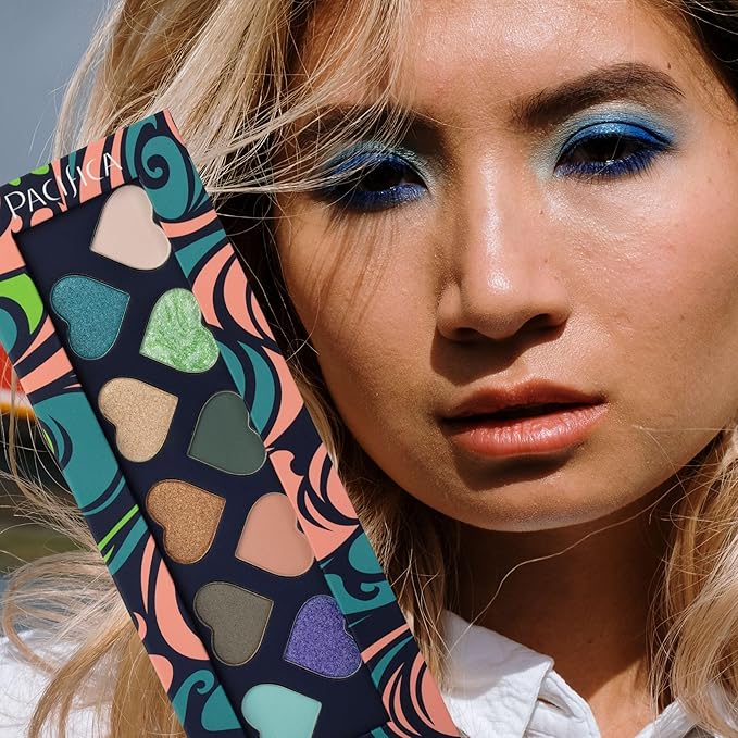Pacifica Eyeshadow Palette – Waikiki Mineral Eyeshadow, Blendable Shimmer & Matte Shades w/Velvet Matte, Shimmer & Metallic, Cocoa Butter Infused, Talc-Free, Vegan & Cruelty-Free, 0.24 oz 10 Shades