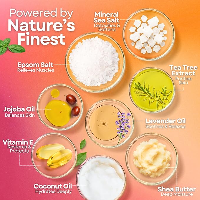 - Luxurious Spa Soak: Indulge in a rejuvenating bath salts gift set for women designed to calm the senses and soften the skin. Infused with floral essential oils, this epsom salt gift set delivers a full spa-like experience at home. Whether you're gifting a loved one or treating yourself, this bath soak set offers total body relaxation and glowing skin with every soak