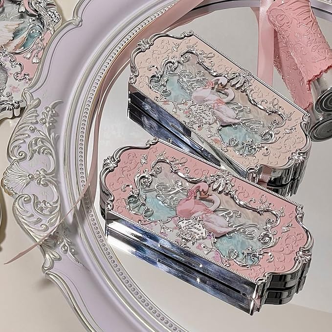 - Portable Travel-Size: Ballet-inspired case with silver detailing,engravings of ballet skirts/slippers,water ripple & oil-painted swan accents + full mirror.Compact,lightweight case for on-the-go glam