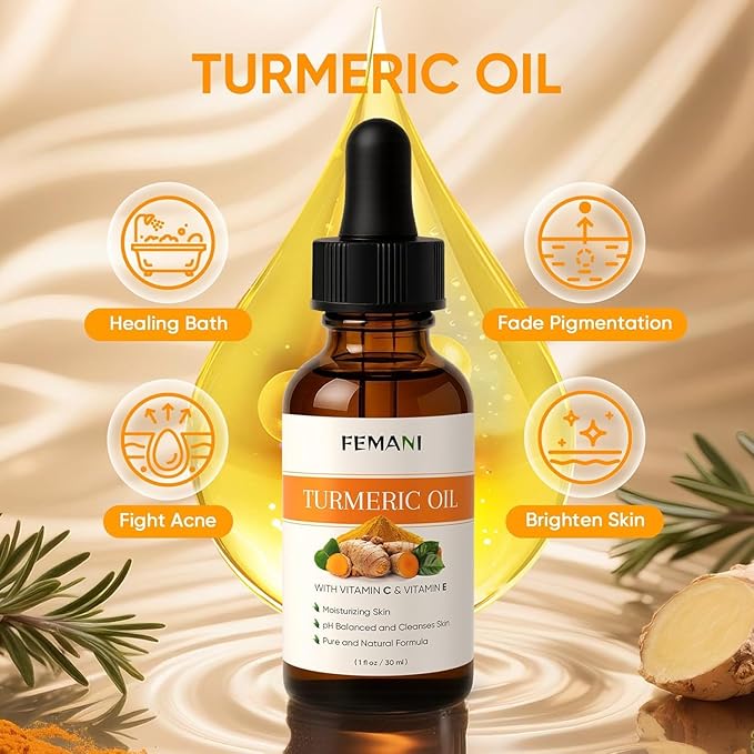 - 【VITAMIN C and VITAMIN E】femani natural turmeric soap bar and turmeric oil is infused with a nourishing formula with vitamin C, vitamin E to soothe, help moisturize skin and balance PH. The simple ingredients are more safer, helps soothe and hydrate skin while promoting a natural, healthy glow with regular use