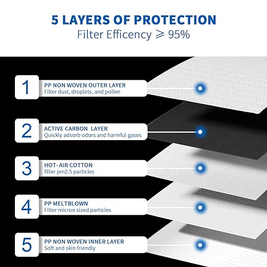 - Advanced Filtration: The Amazon P95 mask offers superior protection with its P95-rated filtration, effectively blocking 95% of airborne particles, including dust, pollutants, and oil-based aerosols.