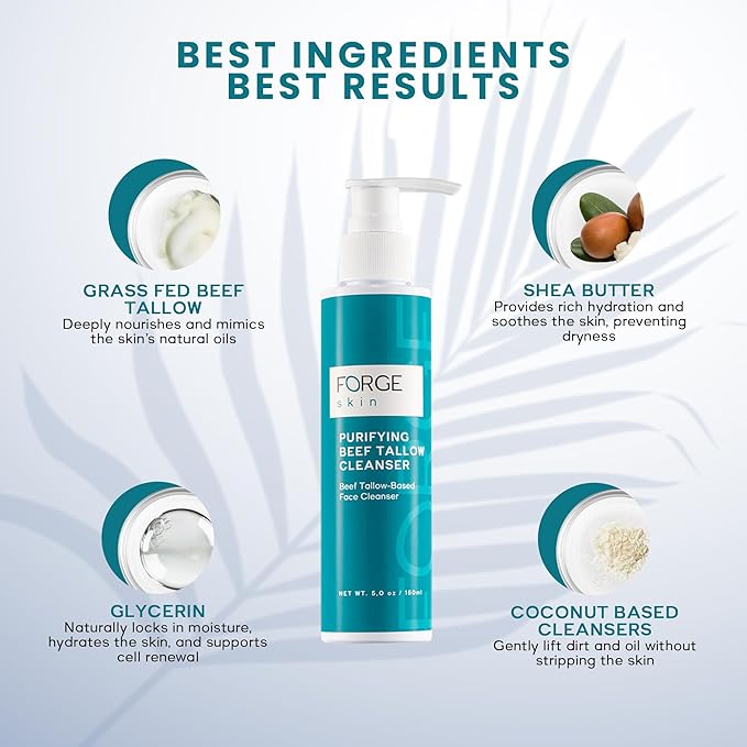 - FORGE SKIN HYDRATING & NOURISHING FORMULA: Our Forge Skin care acne face wash skincare set for Women is designed to deeply hydrate and nourish your skin, leaving it feeling soft and refreshed. Beef tallow grass fed anti aging for women skin care face wash set is Ideal for daily use, grass fed tallow organic for skin suitable for all combination skin types. Experience a balanced, rejuvenated complexion with each bubble skincare set wash.
