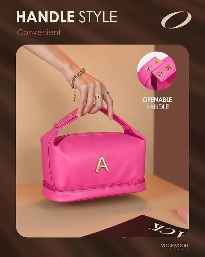 - 【Double-layer Design】The monogrammed makeup bags is double-layer with a unique design of upper and lower storage areas. The bottom compartment is great for storing cosmetics, eye shadows, makeup brushes, and other items. The top layer features a large opening for easy access, along with two small compartments for lipsticks and earrings.