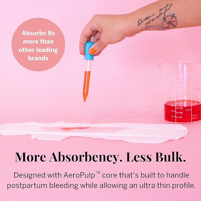 - INCREDIBLE ABSORBENCY. These multilayer pads absorb 300 mL giving you overflow protection, locking all postpartum moisture deep in the core.