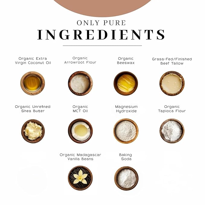 - Nourishing Natural Ingredients: Crafted with 100% grass-fed beef tallow, organic extra virgin coconut oil, unrefined shea butter, and beeswax, this formula supports your skin’s natural barrier while delivering rich hydration and long-lasting comfort.