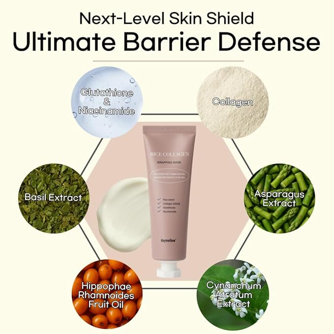 daymellow Rice Collagen Wrapping Mask 2.36 fl. oz / 70ml – Korean Peel-Off Facial Mask with Hydrolyzed Collagen, Hydrating & Firming, Overnight Gentle Pore Tightening for Glowing Glass Skin
