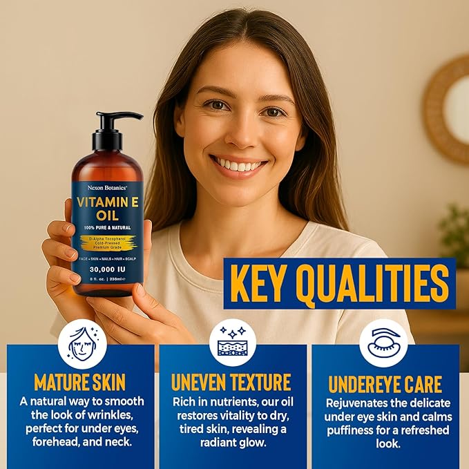 - Hydrates & Nourishes Dry Skin: Formulated with 30,000 IU of natural Vitamin E (d-alpha tocopherol) to deeply moisturize and protect dry, flaky, or rough skin.