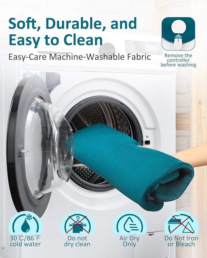 - Soft, Durable, and Easy to Clean – This machine-washable heating pad is easy to maintain. Simply remove the controller and wash the pad for easy cleaning. With shape-retaining fabric and reinforced stitching, the heated wrap offering you convenience and long-lasting comfort. Note: Do not immerse the controller in water or machine wash frequently. For spot cleaning, use a damp cloth with mild detergent.