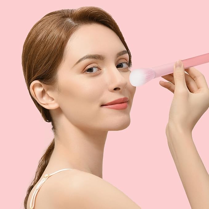 - ❤ [10 pieces brushes Set】 All the brushes needed for makeup are provided in this set of brushes. Contains Powder Brush, Contour Brush, Stippling Brush, Nose Shader Brush, Blending Brushes,Eyeshadow Brushes,Eyeliner Brush.help you create the flawless look.From natural makeup to party makeup, this makeup brush set can be completed as it is, is excellent in coloring