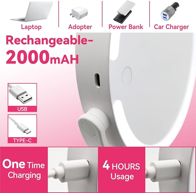 - โก 2200mAh Fast Charge & 2.5Hr Runtime Get 130+ minutes at max brightness. Recharges fully while you sip coffee (2.5hrs via USB-C). Lighted makeup mirror with magnification works while chargingโno panic during rushed mornings!