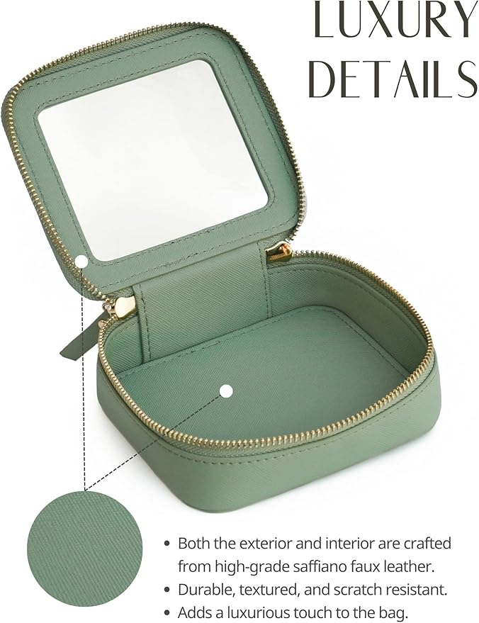 - [Mini but Mighty] – The green mini makeup bag measures 5'' x 4.7'' x 2'' (12.7cm x 12cm x 5cm), perfect for holding daily mini essentials including lip balms, hair ties, jewelry, Air Pods, charging cords and medications. Slip it into your purse, backpack, everyday tote or travelling bag for easy access to your must-have items.