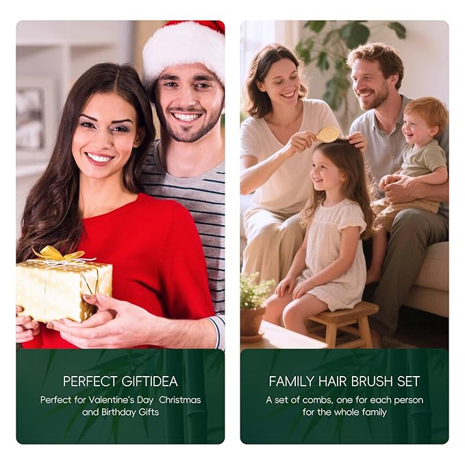 - GIFT BOX VERSION: Our natural bamboo brushes and combs are presented in a bespoke, laser-engraved gift box with intricate patterns, blending traditional craftsmanship with modern style. Perfect for Valentine’s Day, Mother’s Day, Thanksgiving, Christmas, anniversaries, and birthdays—an ideal present for girlfriends, wives, moms, and friends
