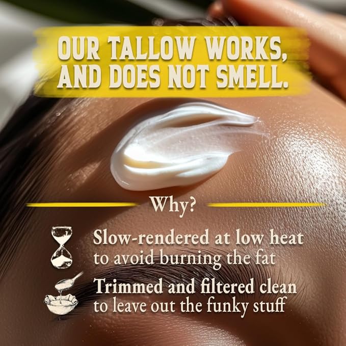 - ๐ฆ IRRESISTIBLY SATISFYING WHIPPED TEXTURE: Immerse yourself in the sheer luxury of our more than just a tallow face moisturizer โ a versatile honey tallow balm for face, body lotion, lip balm, and full-body care for all skin types. Whipped to an incredibly light and airy texture, it effortlessly melts into your skin, offering a deeply satisfying application experience. Enjoy the indulgence of a high-end cream without โ phthalates, parabens, or artificial additivesโjust pure, natural hydration