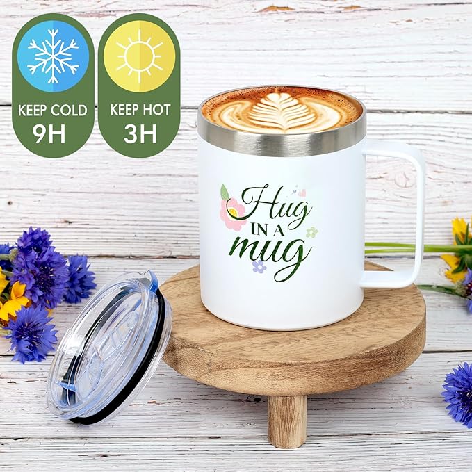 - HUG IN A MUG - INSULATED COMFORT TUMBLER: Featuring “Hug in a Mug,” this insulated tumbler is both functional and heartfelt. It’s a favorite in get well gift boxes, spa care packages, thinking of you gifts, birthday baskets, Mother’s Day sets, relaxation gifts, tea gift sets, sympathy boxes, encouragement gifts, friendship gift boxes, emotional care sets, and wellness mugs for her