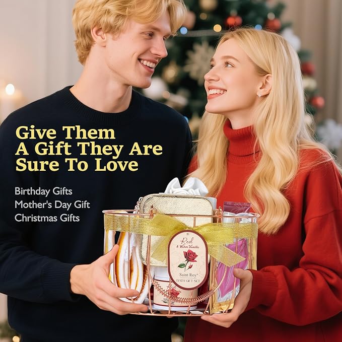 21Pcs Bath and Body Gift Basket Set for Women Christmas Gifts- Rose Vanilla XL Spa Gift Basket for Women Gifts| Bath Gift Set Home Bath Spa Self Care Kit - Thank You, Birthday Spa Gift Baskets