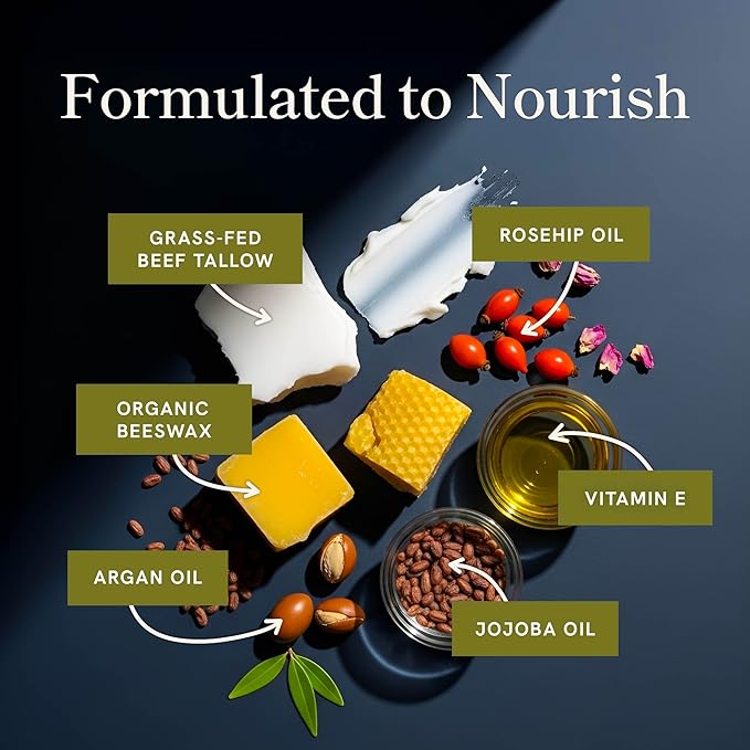 - POWERFUL NOURISHMENT: Beef tallow is packed with hydrating fatty acids and nourishing vitamins. Our Beef Tallow Face Cream for face & body is blended with hardworking, moisturizing ingredients like beeswax; jojoba oil; & Vitamin E; for full-body skin support.*