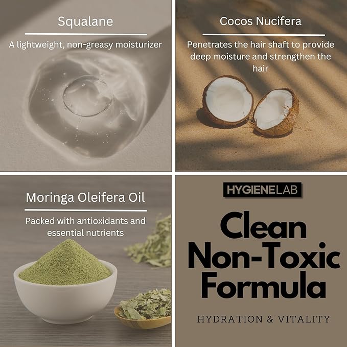 - SHAMPOO: Plant-derived cleansers remove impurities without stripping natural moisture. Panthenol and essential oils (Lavender, Patchouli) nourish and revitalize.