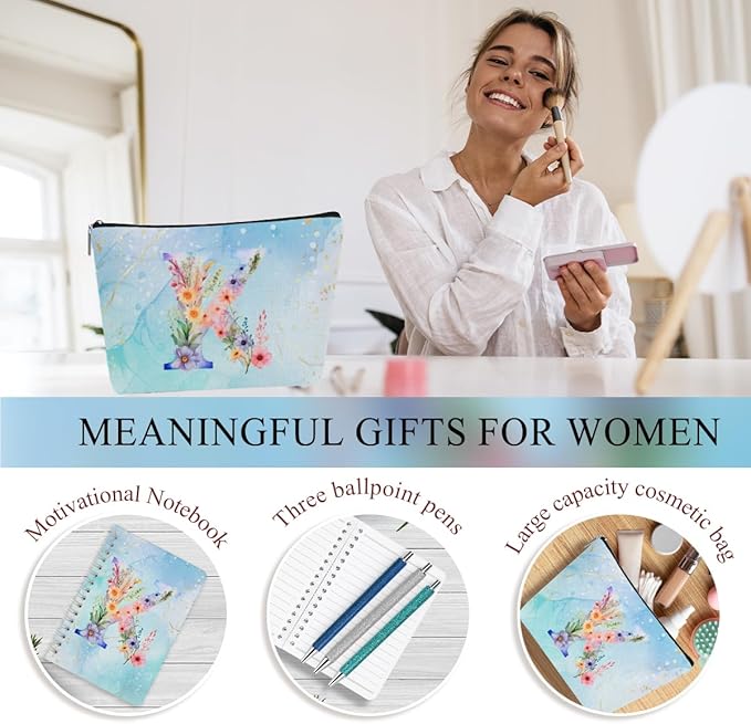 - Sufficient Quantity Personalized Gifts:This 6-pieces Letter surprise gift perfectly combines practicality and cuteness, making it an excellent choice to convey your heartfelt feelings! Our monogrammed gifts for women set contains a range of items; you will receive 1 x 20oz Tumbler with lid, 1x Notebook, 3 x push-on Glitter Ballpoint Pens, and 1 x Cosmetic Bag; the set is large enough to meet your gift needs.