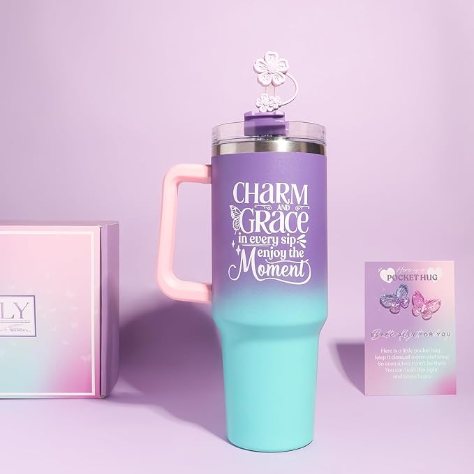 - 【40oz Practical Insulated Tumbler with Lid】: Made of 304 stainless steel, the 40oz insulated tumbler with double-layer vacuum insulation technology can keep beverages at the perfect temperature for hours, whether hot or cold. Since the cup lid is not sealed, the tumbler cannot be turned upside down. The sturdy handle offers a comfortable grip. Positive and uplifting blessings printed make it an ideal relaxation gifts for her, ideal for a peaceful morning or a cozy evening moment