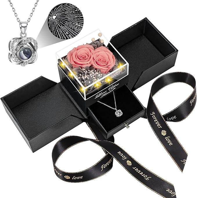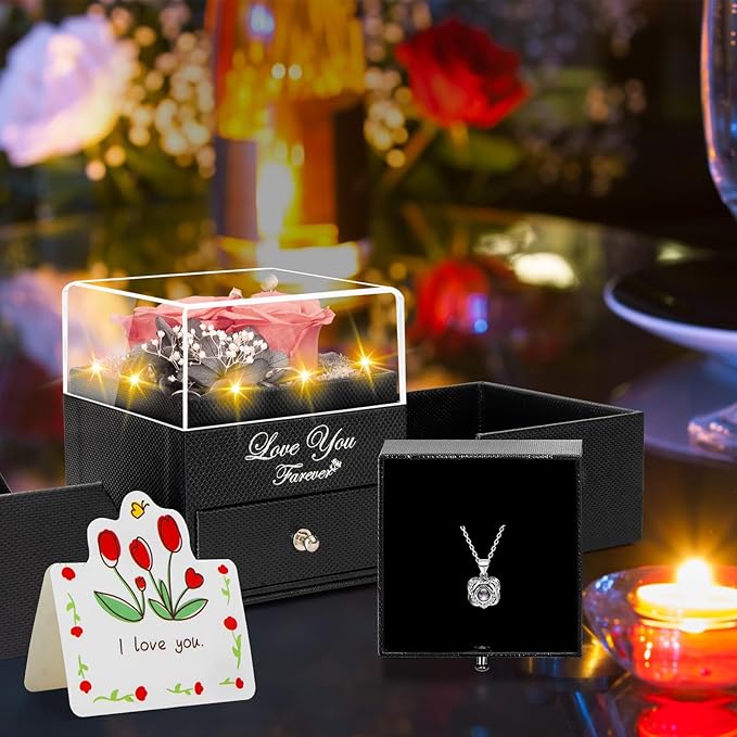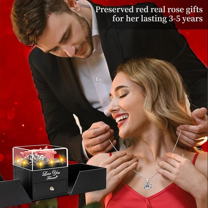 - โ [Package & Service] Premium packaging: a Gift box + a storage bag + a personalised greeting card. Each necklace is individually packaged in plastic bags to avoid scratches, and each rose is carefully Quality-checked. Storage tip: Avoid sunlight/ Humidity to extend lifespan. Ideal last-minute gifts for mum or girlfriend birthday presents. If you have any questions, please feel free to contact us.