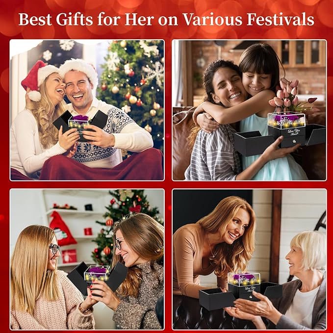 - โจ [Upgraded lights and flowers create Romantic memories] Experience the enchanting glow of LED-lit galaxy roses for dreamy nights for bedside decor, safeguarded in our magnetic preservation boxโperfectly suited for milestone moments from 18th to 90th women birthday gifts ideas for wife. Also romantic wedding anniversary gifts for her, heartfelt mothers day gifts for mom, and versatile gifts for girlfriend/wife/mom across all seasons.