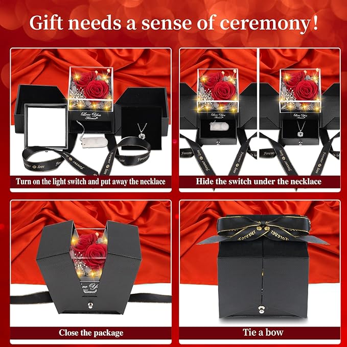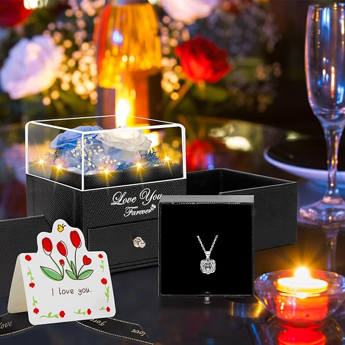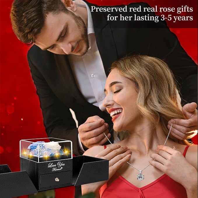 - โ [Package & Service] Premium packaging: a Gift box + a storage bag + a personalised greeting card. Each necklace is individually packaged in plastic bags to avoid scratches, and each rose is carefully Quality-checked. Storage tip: Avoid sunlight/ Humidity to extend lifespan. Ideal last-minute gifts for mum or girlfriend birthday presents. If you have any questions, please feel free to contact us.