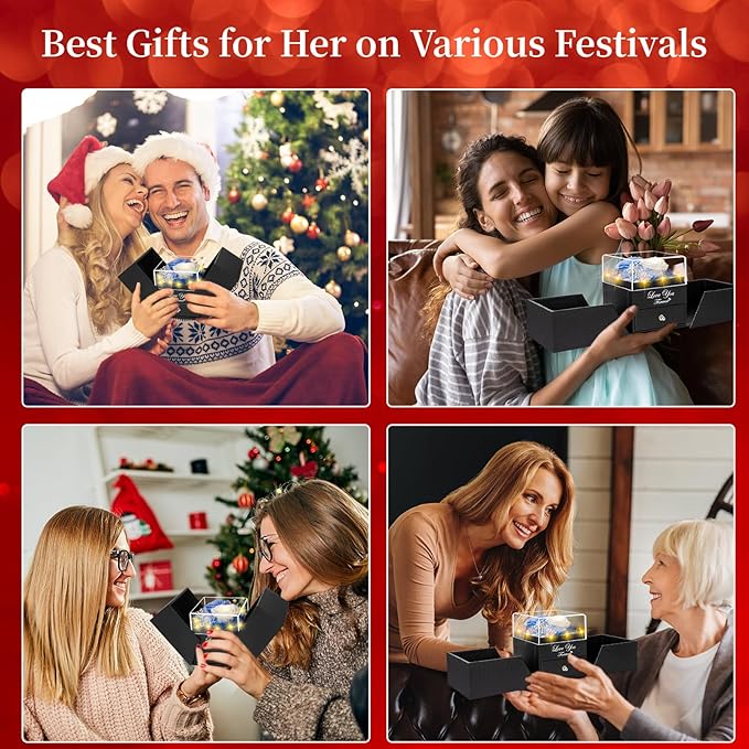- โจ [Upgraded lights and flowers create Romantic memories] Experience the enchanting glow of LED-lit galaxy roses for dreamy nights for bedside decor, safeguarded in our magnetic preservation boxโperfectly suited for milestone moments from 18th to 90th women birthday gifts ideas for wife. Also romantic wedding anniversary gifts for her, heartfelt mothers day gifts for mom, and versatile gifts for girlfriend/wife/mom across all seasons.