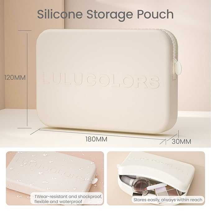 LULUCOLORS-Dual-Ended Makeup Brush Set with Sponge & Travel Case-13 Kinds of Multi-Functional Brushes for Face & Eyes – Soft Bristles, Easy Travel Brush Set (Cream White)