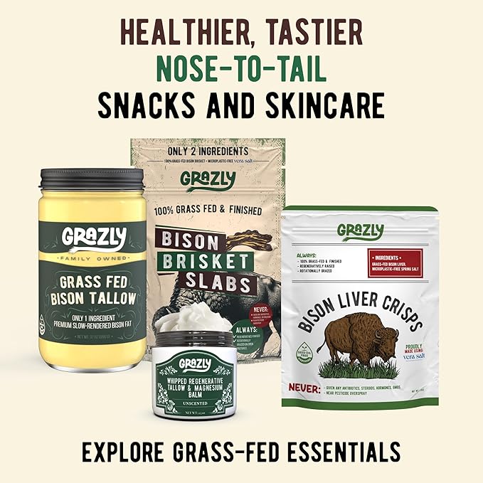 - IDEAL FOR VARIOUS SKIN TYPES: Grazly’s Whipped Bison Tallow Balm is ideal for various skin types, including those with irritation from eczema, rosacea, or sensitivity. The manuka honey and nutrient-rich bison tallow help reduce redness, soothe irritation, and balance moisture. This gentle, non-comedogenic balm nourishes the skin without clogging pores.