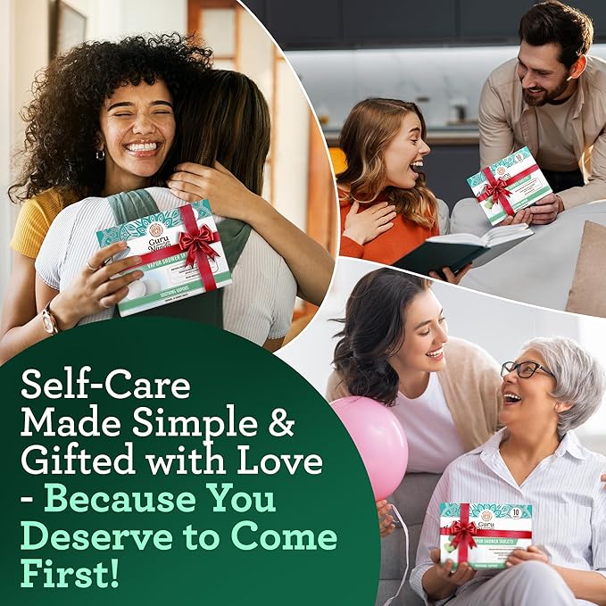 - TRANSFORM YOUR SHOWER INTO A SPA!: Revitalize with our GuruNanda shower tablets, infused with 100% natural eucalyptus & menthol. They dissolve cleanly, releasing a long-lasting, refreshing aroma that elevates your mood and melts away stress.